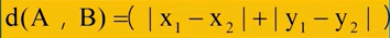 马氏距离(曼哈坦距离、街坊距离):两点在坐标系上绝对轴距综合
